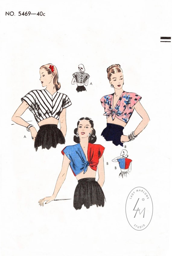 Vintage Sewing Pattern 1940s 40s Crop Top Beachwear Etsy