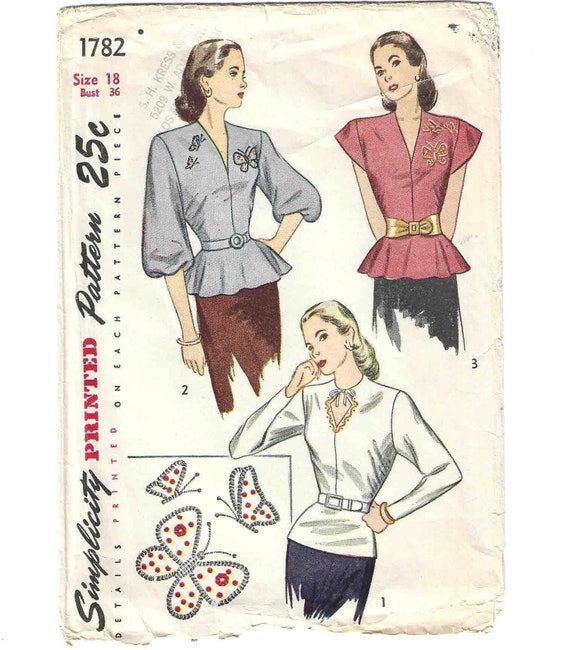 40s Peplum Blouse Pattern Simplicity 1782 Size 18 Bust 36 Etsy